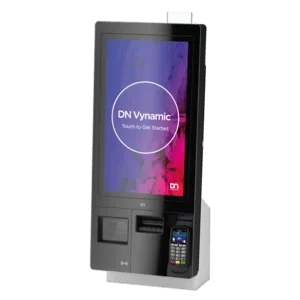 Diebold Nixdorf / SCO EASY MAX DN – VARIANTE III – DN Series EASY MAX – EASY MAX Single – 27" Display (16:9) PCAP-Touch – Landscape orientiert – Intel Raptor Lake-PS U300L (15 W) – Lüfterlos – Desk Mounting – Freestanding Baseplate – Interne IO-Extension-Board – DDR5 RAM 8 GB – M.2 NVMe SSD 512 GB – Integriertes WLAN & Bluetooth – Windows 11 IoT Enterprise 2024 LTSC Value – Vorinstalliert – Gehäuse DN White – Frontpanel Schwarz – Integrierte Statusleuchte