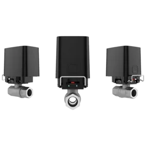 Ajax WaterStop, Wasserventil mit Fernsteuerung, Automatisierungsszenarien nach Alarm des Überschwemmungsmelders, DN15 (1/2"), DN20 (3/4"), DN25 (1") RuB Kugelhahn, bis zu 3 Jahren Batterielaufzeit, bis zu 1100m Funkreichweite ohne Hindernisse, optionaler Anschluss von Drittanbieter-Netzteilen, Kopplung per QR-Code, inkl.; 4x CR123A-Batterien (vorinstalliert), DN15, DN20 oder DN25 RuB-Kugelhahn (abhängig vom gewählten Kit, 2 Sperren zur Befestigung des elektrischen Stellenantriebs, Schnellstartanleitung